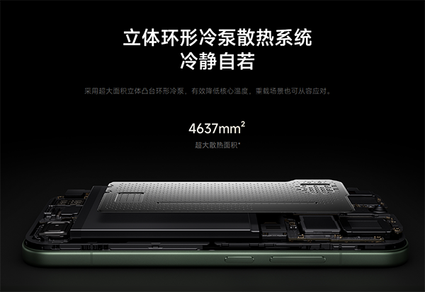 針對(duì)小屏散熱難題,小米配備的是4637mm2超大散熱面積的立體凸臺(tái)環(huán)形冷泵,有效降低核心溫度,重載場(chǎng)景也可從容應(yīng)對(duì)。