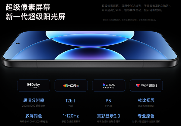 屏幕素質(zhì)方面,擁有2608*1200像素,支持1-120Hz LTPO 可變刷新率,全場景DC調(diào)光,最低1nit,最高3500nits的峰值亮度。