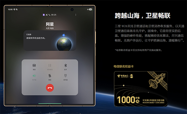 也就是說,三星W26是首款支持天通衛(wèi)星通信的心系天下手機(jī),支持雙向衛(wèi)星通話和衛(wèi)星短信,在極端情況下提供多一種溝通保障,購機(jī)可獲贈1000元天通衛(wèi)星套餐權(quán)益,享1年300分鐘衛(wèi)星通話和100條衛(wèi)星短信。該機(jī)還融入了中國電信的星小辰終端智能體AI系統(tǒng)。