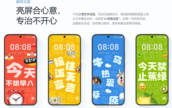 同時(shí),鴻蒙系統(tǒng)還提供心情文字主題、可愛萌寵鎖屏等趣味交互,增強(qiáng)用戶的情感化體驗(yàn)。