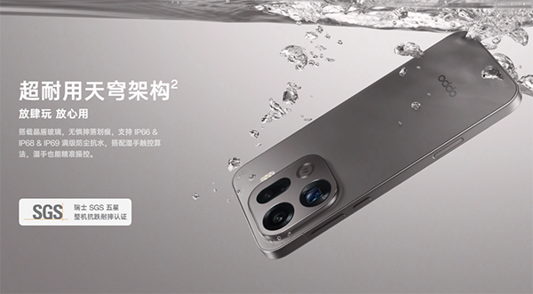 另外,OPPO Find X9 Pro支持的是IP66+IP68+IP69級別的防塵防水,也是滿級防水配置了。