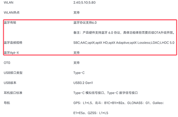 藍牙6.0,并且支持SBC、AAC、aptX、aptX HD、aptX Adaptive、aptX Lossless、LDAC、LHDC 5.0這些規(guī)格協(xié)議。