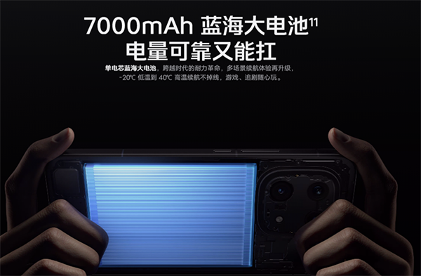 電池方面,該機內(nèi)置了7000mAh藍海電池,依托新一代球形硅負極技術,電量儲存能力較上一代直接提升50%,直觀轉化為設備更大電池容量+更長續(xù)航時間。