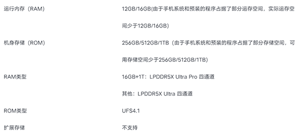 9600Mbps LPDDR5X Ultra規(guī)格的內(nèi)存(頂配是10677Mbps的LPDDR5X Ultra Pro規(guī)格內(nèi)存),UFS4.1規(guī)格閃存。