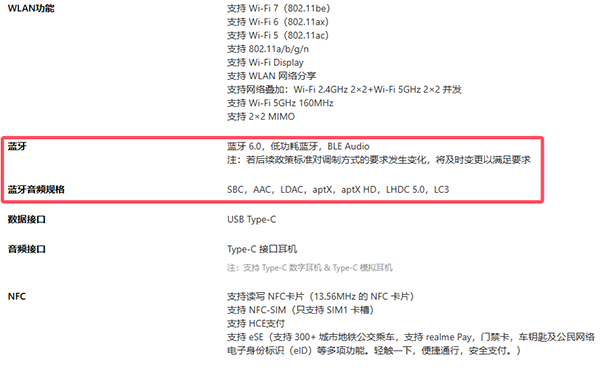 藍(lán)牙6.0,并且支持SBC,AAC,LDAC,aptX,aptX HD,LHDC 5.0,LC3這些音頻規(guī)格。