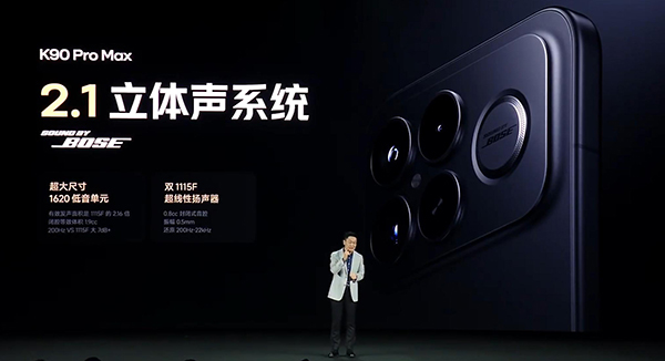 總的來看,紅米K90 Pro Max搭載 2.1 立體聲系統(tǒng) —— 兩顆超線性揚(yáng)聲器 + 超大獨(dú)立低音單元,Sound by Bose 聯(lián)合調(diào)音,“實現(xiàn)低音飽滿,細(xì)節(jié)豐富,人聲清晰”。
