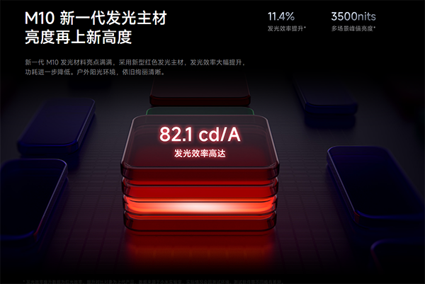 也就是說(shuō),該機(jī)搭載了與小米17 Pro Max同款的 “超級(jí)像素”無(wú)損排列技術(shù),并采用 M10新一代發(fā)光材料,其中紅色主材發(fā)光效率大幅提升,屏幕峰值亮度高達(dá) 3500nits,戶外可視性極佳。