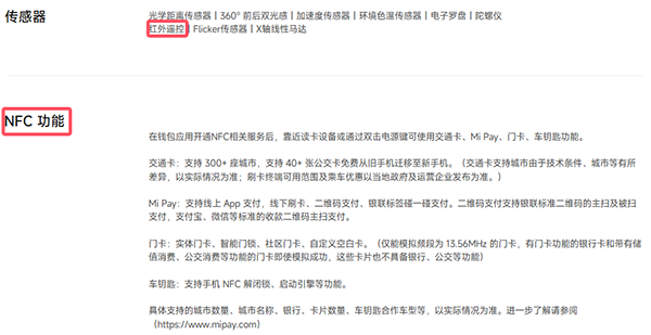 有,紅米K90在細(xì)節(jié)的配置上是比較全面的,并且支持這個(gè)NFC和紅外遙控功能。