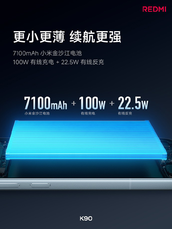 而紅米K90的電池是7100mAh,每兩天才需要充電1次,每次充電約30分鐘。