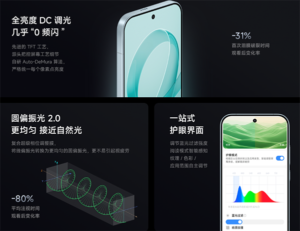 護(hù)眼層面,K90系列配備小米青山護(hù)眼3.0,整合閱讀模式、智能感知、紋理調(diào)節(jié)、色彩調(diào)節(jié)、應(yīng)用范圍調(diào)節(jié)等功能,支持藍(lán)光過濾強(qiáng)度可視化設(shè)置,全系列實(shí)現(xiàn)全亮度DC調(diào)光與圓偏振光2.0技術(shù),獲視覺健康友好度S++認(rèn)證。