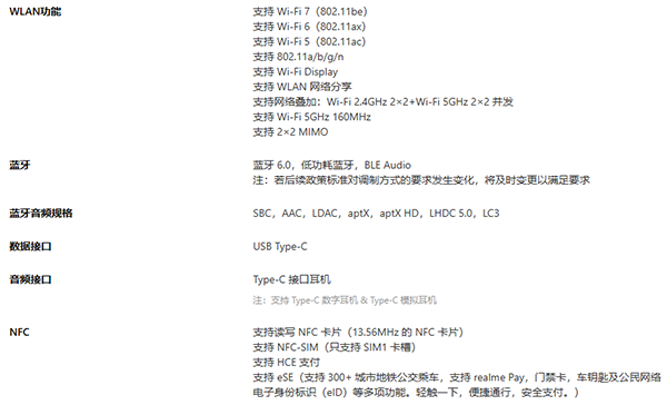 支持,realme真我GT8搭載的是高通驍龍8至尊版處理器,并且支持Wi-Fi7(802.11be)、Wi-Fi6(802.11ax)、Wi-Fi5(802.11ac)、802.11a/b/g/n。