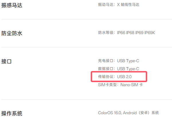 USB2.0,一加Ace6配置的依然是USB2.0的接口,并不是3.1。