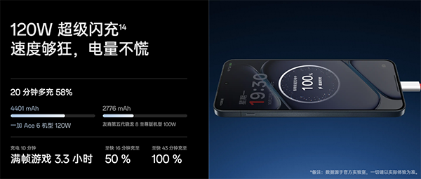 此外,一加Ace 6還支持「局間充電」功能,在游戲間隙低電量時,充電10分鐘,電量恢復(fù)速度相比以往提升一倍,大幅縮短等待時間,讓游戲玩家在激戰(zhàn)中持續(xù)滿血滿電,輕松應(yīng)對長時間對戰(zhàn)。