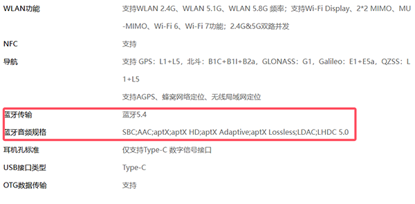 藍牙5.4,藍牙音頻規(guī)格上支持SBC、AAC、aptX、aptX HD、aptX Adaptive、aptX Lossless、LDAC、LHDC 5.0。
