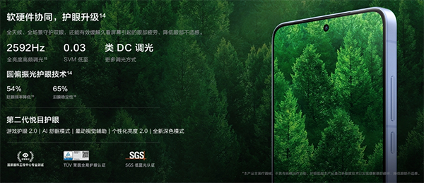 在這個(gè)護(hù)眼方面,屏幕支持2592Hz全亮度高頻PWM調(diào)光與類(lèi)DC調(diào)光,SVM值低至0.03,配合圓偏振光技術(shù),真正實(shí)現(xiàn)“電競(jìng)不傷眼”。