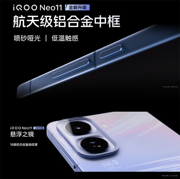 從外觀上來看,這一代的iQOO Neo11升級航天級鋁合金,配合噴砂氧化工藝,結合懸浮之鏡設計,金屬中框,帶來兩款全新配色面對疾風、像素方橙,還有經典配色疾影黑、馳光白。