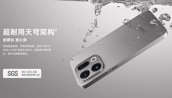 IP66+IP68+IP69級別,OPPO Find X9機身支持IP69+IP68+IP66滿級防塵防水,獲得瑞士SGS五星整機抗跌耐摔認(rèn)證。