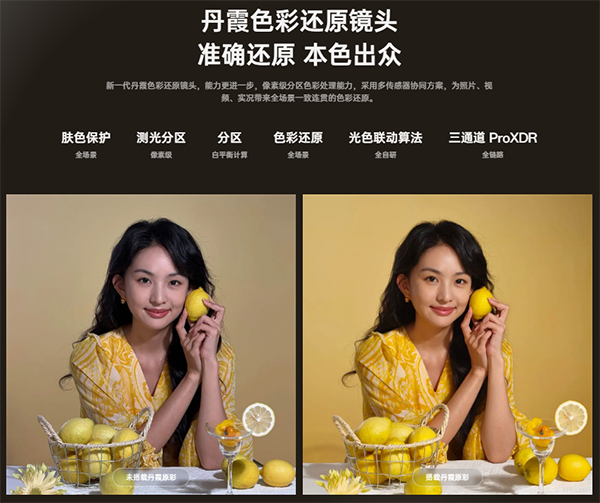 本次通過三個硬件協(xié)同工作,即成像鏡頭+全局多光譜傳感器+丹霞色彩還原鏡頭協(xié)同運作,確保色彩還原實現(xiàn)前所未有的精細和準確。