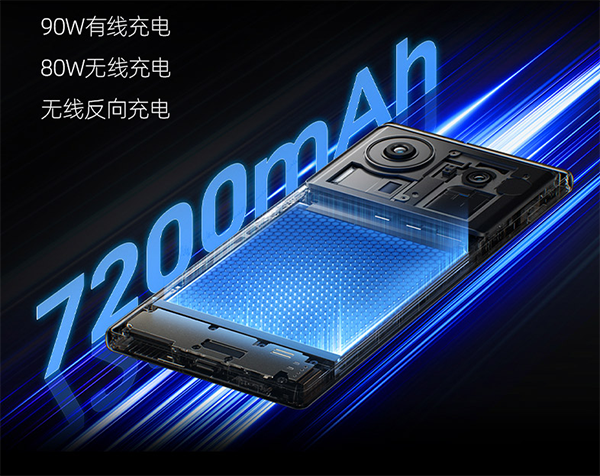 也就是說,努比亞Z80 Ultra配置的是7200mAh的南海電池,并且是單電芯雙接口,支持90W有線快充,80W無線快充,支持充電分離,還支持無線反向充電。