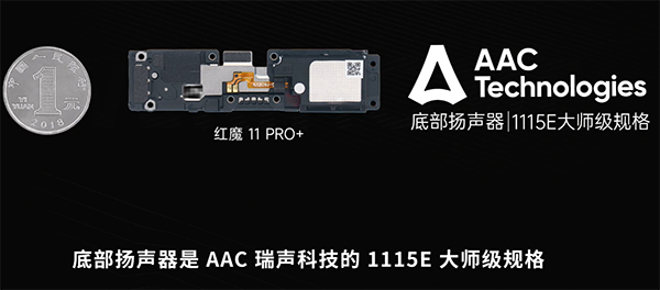 也就是說,紅魔11 Pro/Pro+配置的是雙揚聲器(?強于上代:上瑞聲1015A規(guī)格(半腔+額外的金屬外腔)+下瑞聲1115E規(guī)格)。