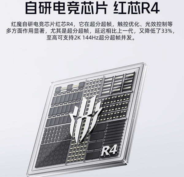 是,紅魔11 Pro/Pro+搭載的是第五代驍龍8至尊版處理器,并且內(nèi)置了紅芯R4電競(jìng)芯片,也就是獨(dú)顯了,并且2K+144Hz并發(fā),延遲降低33%。