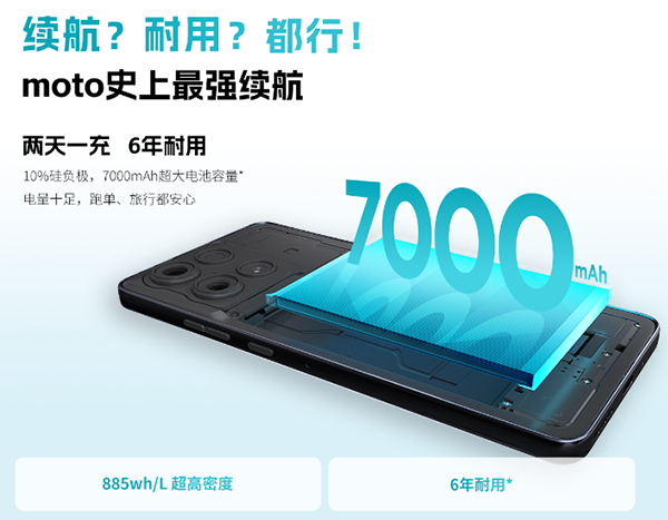 續(xù)航:7000mAh電池容量(10%硅負(fù)極,885Wh/L電池能量密度)+30W有線充電,不支持無線充電;