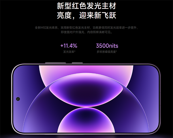 這次小米17 Pro搭載了一塊6.3英寸的直屏,并且使用了全新的M10發(fā)光體系,首次深入發(fā)光材料層,在25%的APL大窗口面積亮度達到3500nits,得益于新型紅色發(fā)光主材料,紅光效率超越進口材料6.8%,全亮度功耗曲線低于iPhone。