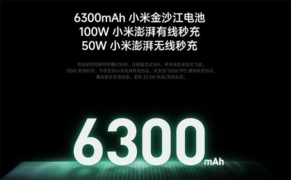 電池采用創(chuàng)新異形疊片結(jié)構(gòu),含硅量高達16%,帶來續(xù)航表現(xiàn)大飛躍,并且100W有線秒充,不僅支持小米澎湃秒充協(xié)議,還支持100W PPS通用快充協(xié)議,兼容更多充電設(shè)備。