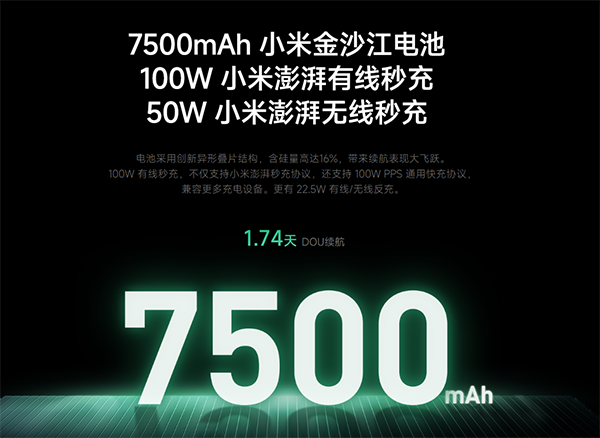 在電池的配置上,這一代的小米17 Pro Max的電池為7500mAh的小米金沙江電池,采用16%硅含量的新一代球形硅負極材料,顯著的增加了電池密度。