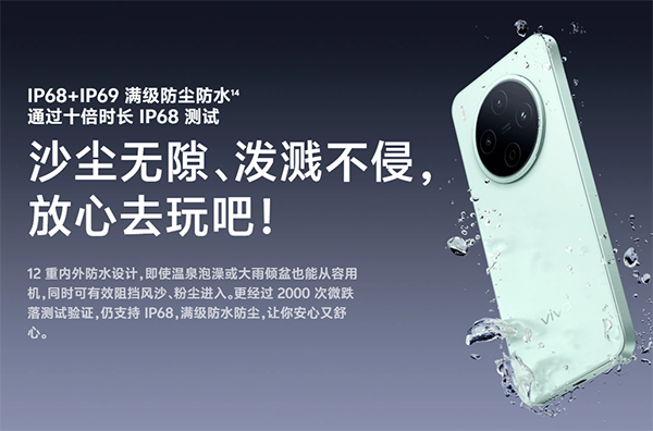 IP68+IP69級別, vivo Y500 Pro支持的是IP68+IP69的滿級防塵防水,無論是雨中實(shí)用還是不小心掉入熱水里,都能輕松應(yīng)對。