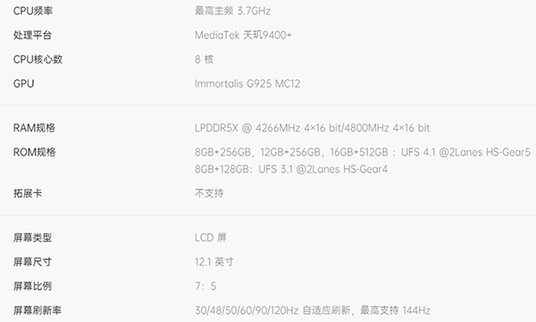 性能方面,OPPO Pad5搭載了天璣9400+移動(dòng)平臺(tái),配備LPDDR5X內(nèi)存+UFS4.1閃存的儲(chǔ)存組合,運(yùn)行內(nèi)存有8GB、12GB和16GB可選,ROM則是128GB、256GB和512GB可選。