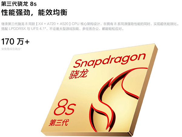 內(nèi)存和閃存:LPDDR5X規(guī)格內(nèi)存,UFS3.1規(guī)格閃存(128GB),UFS4.1規(guī)格閃存(256GB/512GB);