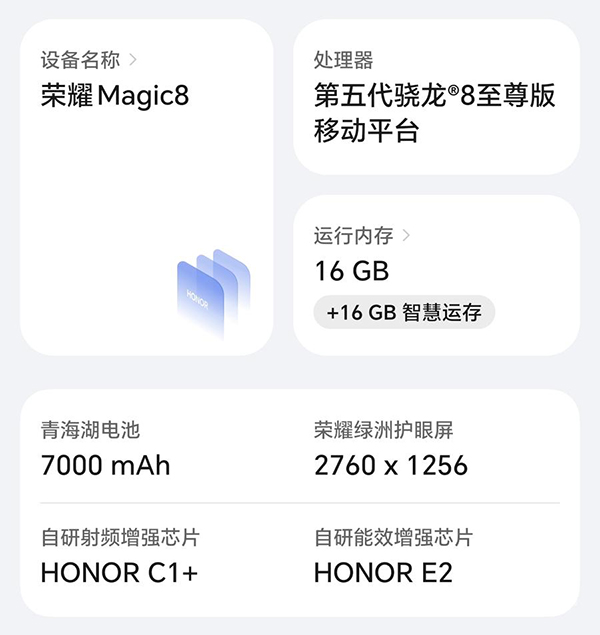 單電芯,榮耀Magic8配備了一塊超大的7000mAh青海湖電池,并且是單電芯雙接口設(shè)計(jì)。