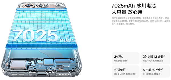 落地到手機(jī)硬件中,OPPO Find X9內(nèi)置一塊7025mAh的冰川電池,相較上代提升17%。