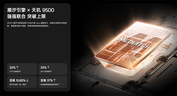核心配置上,這一代的OPPO Find X9 Pro首次搭載了由OPPO與聯(lián)發(fā)科技聯(lián)合研發(fā)的天璣9500旗艦芯片,這顆芯片采用了臺積電最新的N3P制程工藝,也就是第三代3nm節(jié)點。