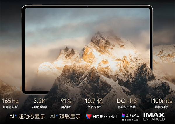屏幕方面,這次的榮耀MagicPad 3 Pro采用13.3英寸LCD屏幕,分辨率為3200×2136,像素密度達(dá)291 PPI,支持最高165Hz刷新率和7檔智能調(diào)節(jié),峰值亮度為1100nit,典型對比度為1500:1,并通過IMAX Enhanced與HDR Vivid雙重認(rèn)證。