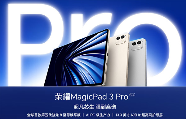 其它:三麥克風(fēng),八揚聲器,支持Wi-Fi7(802.11 be),自研雙擎天線,藍牙6.0,USB3.2 Gen2,搭載MagicOS 10.0(基于Android 16)系統(tǒng)。
