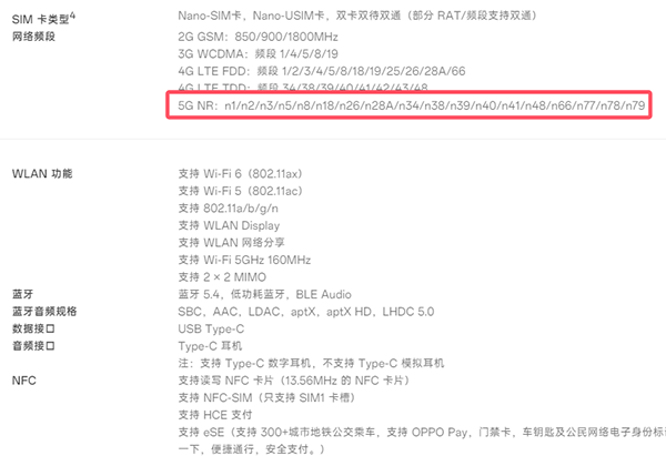 5G頻段:n1/n2/n3/n5/n8/n18/n26/n28A/n34/n38/n39/n40/n41/n48/n66/n77/n78/n79。