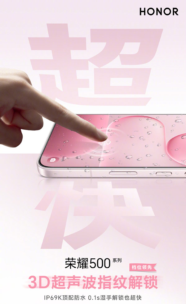在這個(gè)指紋方面,榮耀500 Pro載3D超聲波指紋,號(hào)稱“濕手解鎖僅需0.1秒”,大幅提升日常解鎖體驗(yàn)。