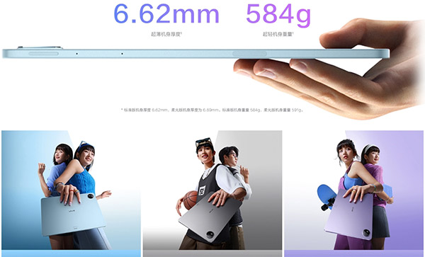 重量和厚度:厚度是6.62mm,重量是584g(柔光版6.69mm/591g);
