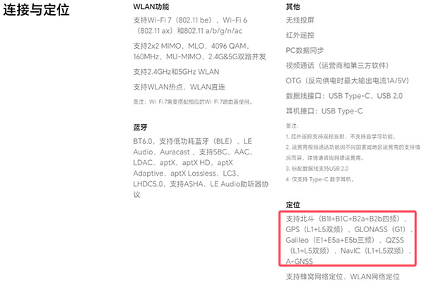 在導(dǎo)航參數(shù)上,該機配置的是北斗(B1I+B1C+B2a+B2b四頻)、GPS(L1+L5雙頻)、GLONASS(G1)、Galileo(E1+E5a+E5b三頻)、QZSS(L1+L5雙頻)、NavIC(L1+L5雙頻)、A-GNSS、支持蜂窩網(wǎng)絡(luò)定位、WLAN網(wǎng)絡(luò)定位。