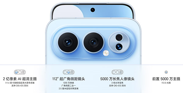 硬件上,榮耀500 Pro依然是三攝組合,主攝為三星HP3兩億像素AI超清主攝,尺寸達1/1.4,CIPA5.0光學防抖,妥妥的高像素大底方案,長焦為5000萬像素,另外還有一顆1200萬像素超廣角鏡頭。