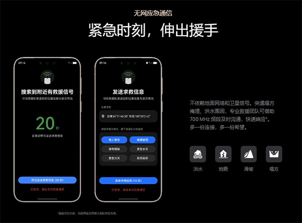 支持,華為Mate80 Pro支持無網(wǎng)應(yīng)急通信,不依賴地面網(wǎng)絡(luò)和衛(wèi)星信號(hào),突遇塌方掩埋、洪水圍困,專?業(yè)救援團(tuán)隊(duì)可借助700MHz頻段及時(shí)溝通,快速響應(yīng),多一份連接,多一份希望。