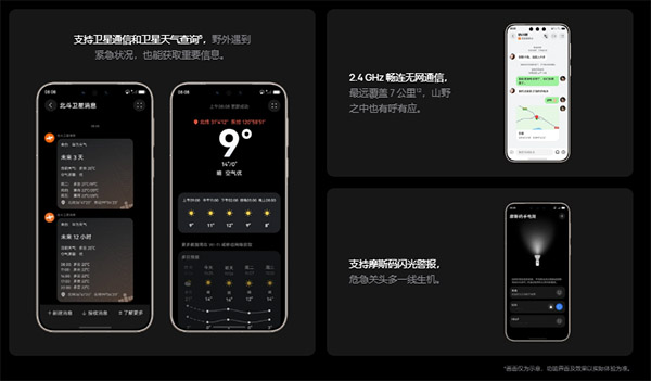 在城市災(zāi)害與戶外救援中,當(dāng)?shù)孛婢W(wǎng)絡(luò)信號(hào)完全中斷時(shí),華為Mate80系列能夠?qū)崿F(xiàn)最遠(yuǎn)13公里的連接距離,并可穿透三堵墻體。