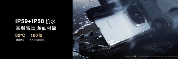 IP58+IP59級(jí)別,華為Mate X7達(dá)到IP58和IP59防塵抗水的頂級(jí)防護(hù)水準(zhǔn),80℃熱水噴淋也不犯怵。