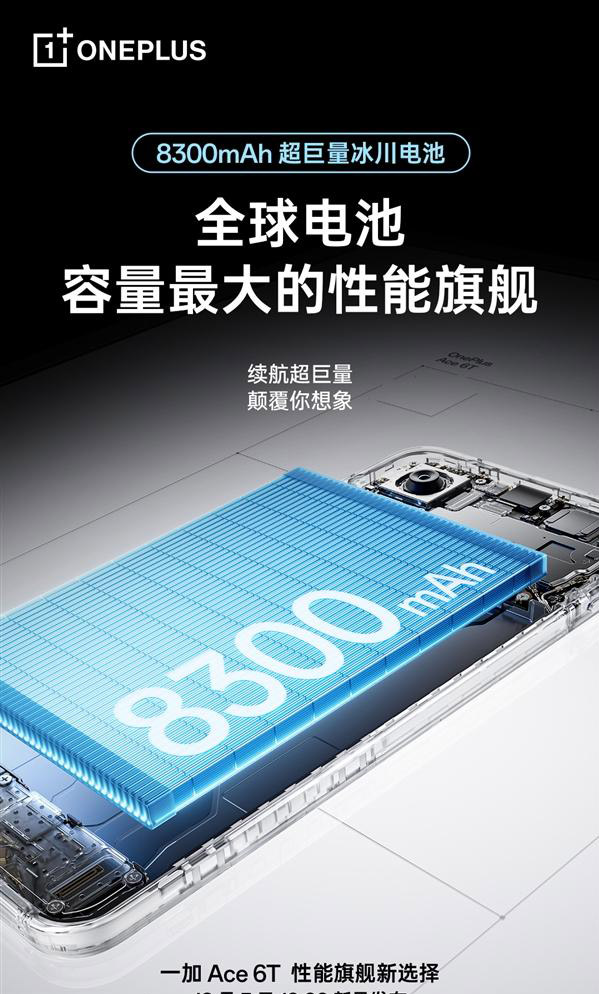 也就是說,一加Ace6T配置的是8300mAh冰川電池,并且采用的是仿生技術(shù)球形硅碳負(fù)極材料,具有15%硅含量,單電芯,能量密度865Wh/L。