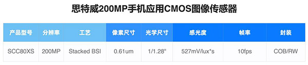 CMOS圖像傳感器供應(yīng)商思特威在之前推出2億像素0.61μm像素尺寸超高清手機(jī)應(yīng)用CMOS圖像傳感器——SCC80XS。