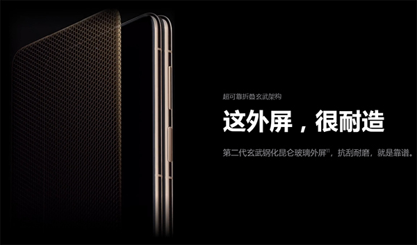 玄武水滴鉸鏈采用創(chuàng)新結(jié)構(gòu)設(shè)計(jì),配合超韌三重疊層結(jié)構(gòu)內(nèi)屏,不僅讓折疊壽命遠(yuǎn)超行業(yè)平均水平,更讓折痕控制更出色。