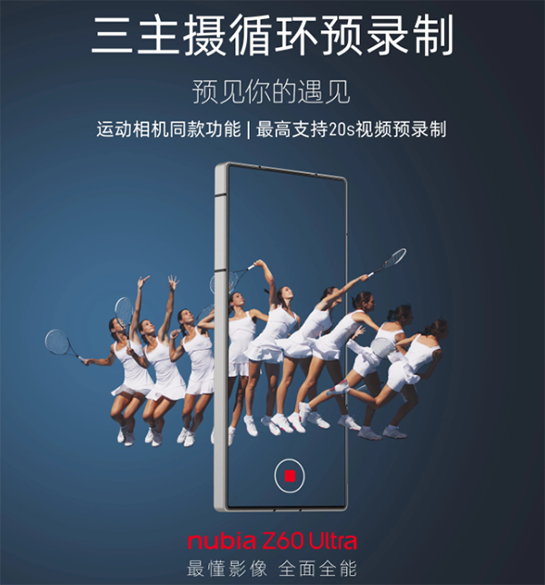 根據(jù)官方的宣傳,這次的努比亞Z60 Ultra將支持“運(yùn)動(dòng)相機(jī)同款循環(huán)預(yù)錄制”,三主攝最高支持20s視頻預(yù)錄制。
