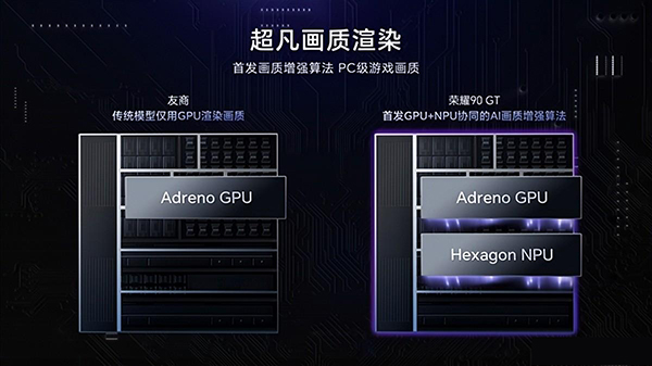 更重要的是,榮耀90 GT帶來超凡畫質(zhì)渲染功能,行業(yè)首發(fā)GPU+NPU協(xié)同的AI畫質(zhì)增強(qiáng)效果,畫質(zhì)更好、功耗更低,在人物、遠(yuǎn)景建筑等細(xì)節(jié)上,做到了媲美電腦端的PC級(jí)游戲畫質(zhì)水平。